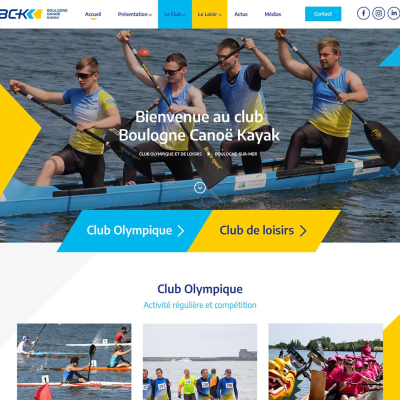 Nous avons accompagné le BCK (pour Boulogne Canoë Kayak) dans la refonte de son internet et de son identité visuelle. L’ancien site internet du club était lourd à actualiser. Le but de la refonte était donc de simplifier le processus modification du site via une interface pensée pour être utilisée sans bagage technique particulier.